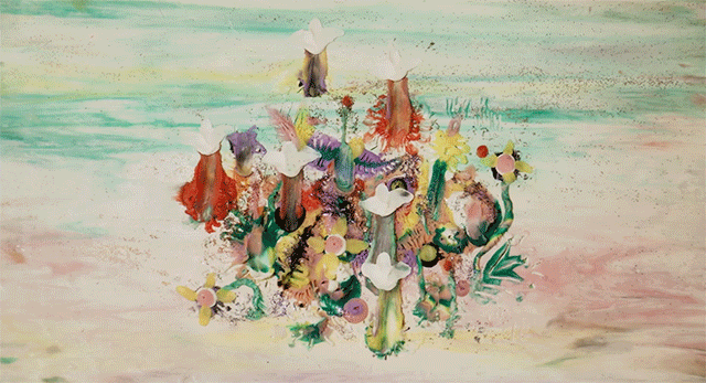 A multitude of vibrant animals and landscapes appear sewn from fabric in the film’s otherworldly realm, each tethered to a single piece of yarn that connects it to a kind of central energy force—a vibrant, tightly-wrapped skein in the sky. But when mysteriously dark tendrils of black fiber begin to leech into this idyllic world, families and herds must run for their lives.